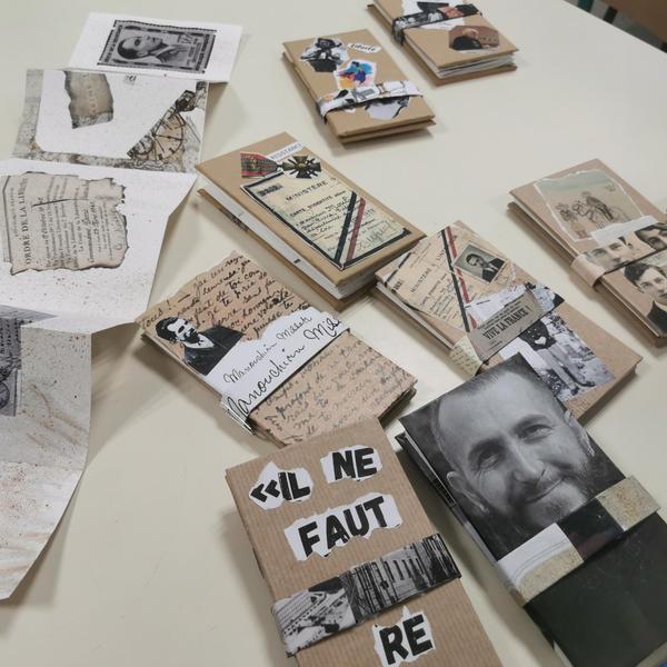 Chaque année, la plasticienne Dominique Barral, spécialisée dans la conception de carnets d'histoire et décoratifs, intervient 2h sur deux ateliers créatifs, avec nos élèves de 1ère SAPAT, sur le temps du cours d'histoire.