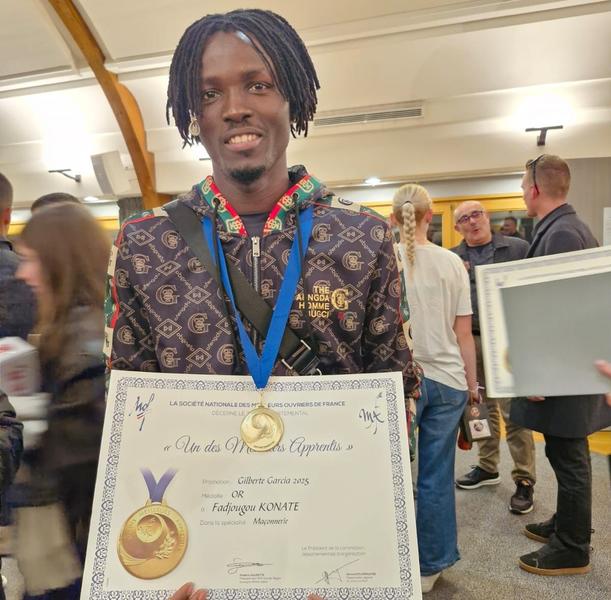 Le 7 novembre, comme 54 autres jeunes des deux Savoie, Fadjougou KONATE a officiellement reçu sa médaille d'or départementale et d'argent régional de maçon, lors de la 40e édition du concours des Meilleurs apprentis de France (MAF) Pays de Savoie, organisée par la Chambre des métiers et de l’artisanat d’Annecy et soutenue par la Région Auvergne-Rhône-Alpes.