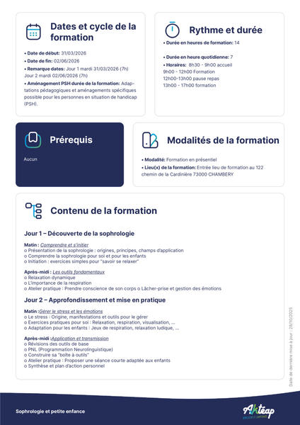 Pour plus d'informations nous contacter. Coût de la formation (net de taxes): 360 €