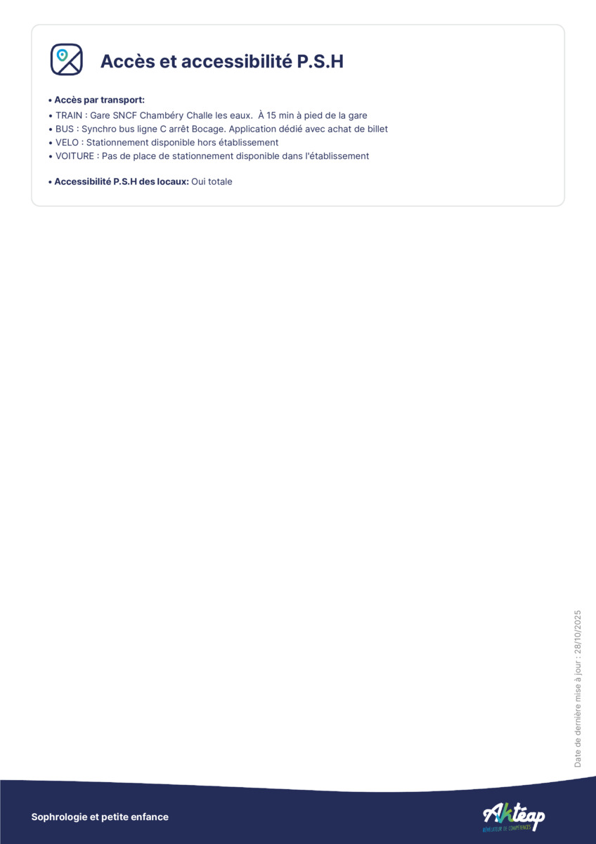 Lieu de la formation : au 122 chemin de la Cardinière 73000 CHAMBERY