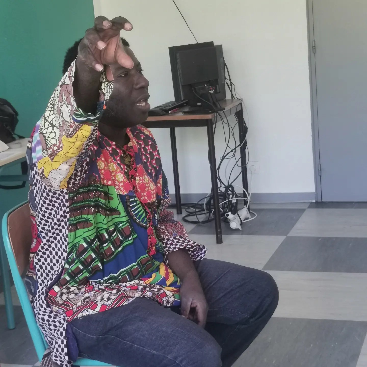 Ismaël Sawadogo, dit Mangouroutou, est taxi conteur. Venu de Bobo Dioulasso à Chambéry, il est passé sur le Campus de la Fondation du Bocage pour rencontrer nos élèves de 3e et de CAPA 1 MAH et partager sa culture. On ne peut pas manquer Ismaël quand il débarque chez nous… en chantant ! Pour se présenter, il reprend son costume de ville, celui de taximan, et nous entraine à bord de sa 306 Peugeot verte, « toit ouvert et sol ouvert », dans les ruelles de Ouagadougou pour nous offrir ses contes.