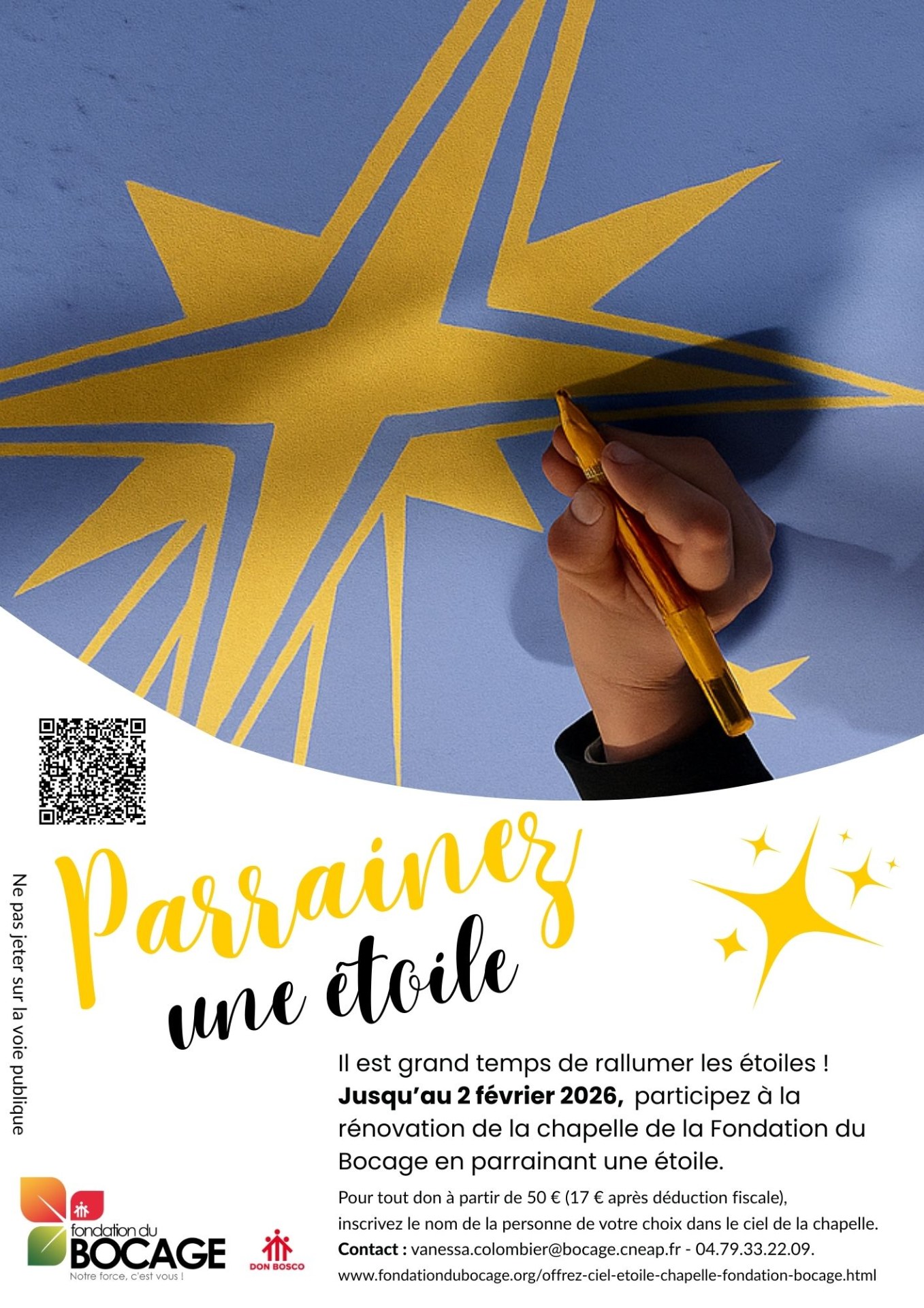 Pour poursuivre cette démarche, nous lançons une deuxième campagne : Offrez un ciel étoilé à la chapelle de la Fondation du Bocage.