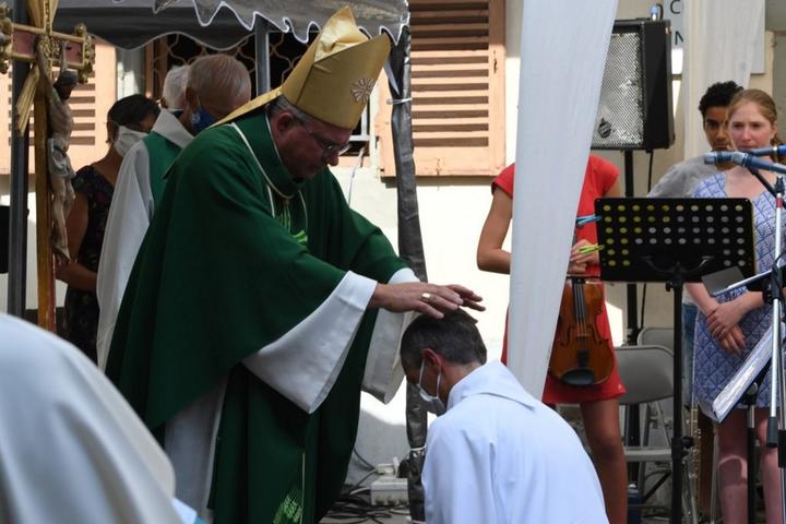 Dimanche 16 août la famille de Bruno de Goer, son équipe d’accompagnement, ses amis, les paroissiens ainsi que les diacres et prêtres de l'Eglise Catholique de Savoie étaient réunis au Bocage, à Chambéry, pour assister à son ordination au diaconat permanent.
