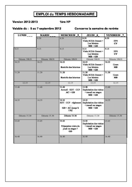 "EDT rentrée 1re HP 2012"