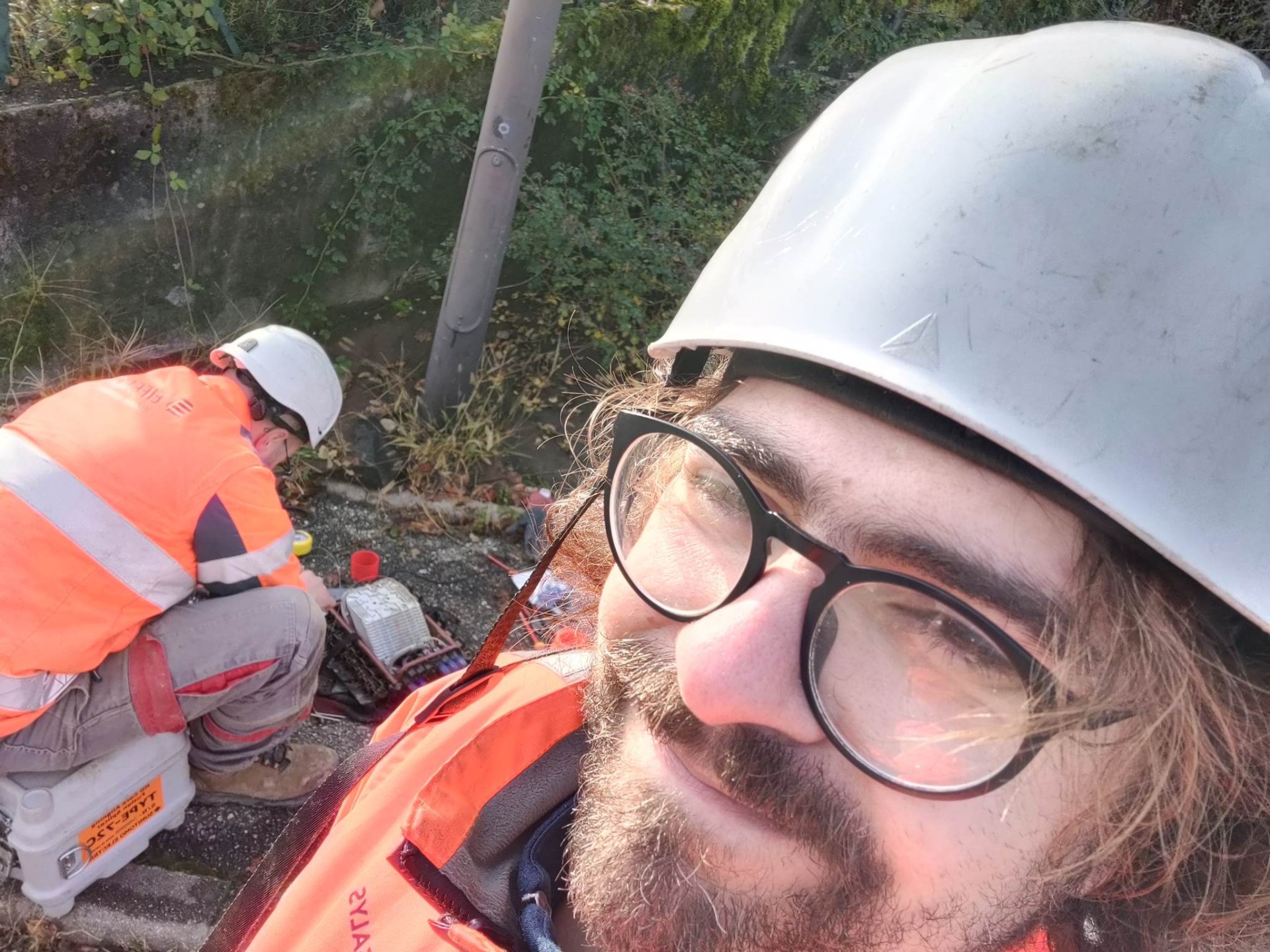 Mathieu : Je m’appelle Mathieu Halbwachs, j’habite sur Saint Jean d’Arvey. Je n’ai jamais été un très bon élève mais j’ai passé mon Bac au Lycée Monge, avec mes dreadlocks et mon rat qui m’accompagnait partout ! Je me suis d’abord orienté vers un BTSA Gestion et Maitrise de l’eau à la MFR de Saint Etienne que je n’ai pas terminé. A l’époque, j’offrais des fleurs dans la rue, c’est peut-être la raison pour laquelle j’ai passé mon CAP Fleuriste à Anger. Par la suite, j’ai continué mes études en BTSA Production Horticole, option maraichage au Bocage, mais je n’ai pas passé le diplôme. J’ai travaillé quelques années dans les vignes, en Savoie, avant de partir, avec ma compagne et amie, au Brésil pour tenir un hôtel familial à Tiradentes, la Pousada Villa Saint Joseph pendant 6 ans. Nous y avons accueilli des mariages, des séminaires, des séjours en immersion linguistique et des événements, comme un départ de montgolfière du jardin ! A mon retour en France, j’ai travaillé comme facteur puis comme caviste chez Métro avant d’entrer chez Eiffage, après une petite formation en fibre optique, pour gérer la maintenance, le contrôle et le dépannage.