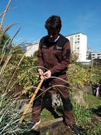 Pour le dernier jour, ils ont planté de la mâche et des salades en serres, avant de nettoyer les derniers plants d'aubergines au Potager de Sonnaz.