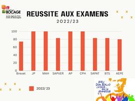 Le taux de réussite par niveau est de 74% au brevet, 83,5% en CAP, 92% en Bac Pro et 83% en BTS.