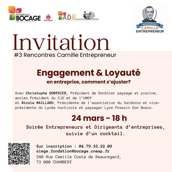 Après avoir exploré les thématiques de « Camille Entrepreneur » puis du « management de la GenZ » lors des précédentes éditions, nous vous proposons de réfléchir ensemble autour du thème « Engagement & Loyauté en entreprise », avec Christophe GONTHIER, Président de Gonthier paysage et piscine, ancien Président du CJD et de l’UNEP, et Nicole MAILLARD, Présidente de l'association du Valdocco et vice-présidente du Lycée horticole et paysager Lyon Pressin Don Bosco.
