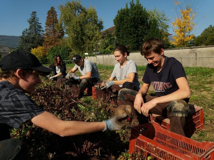 Mercredi et jeudi, en alternance, ils ont désherbé les serres de mâche, ramassé les choux-fleurs au Potager de Sonnaz, où ils ont retrouvé Vigéo, un ancien élève.