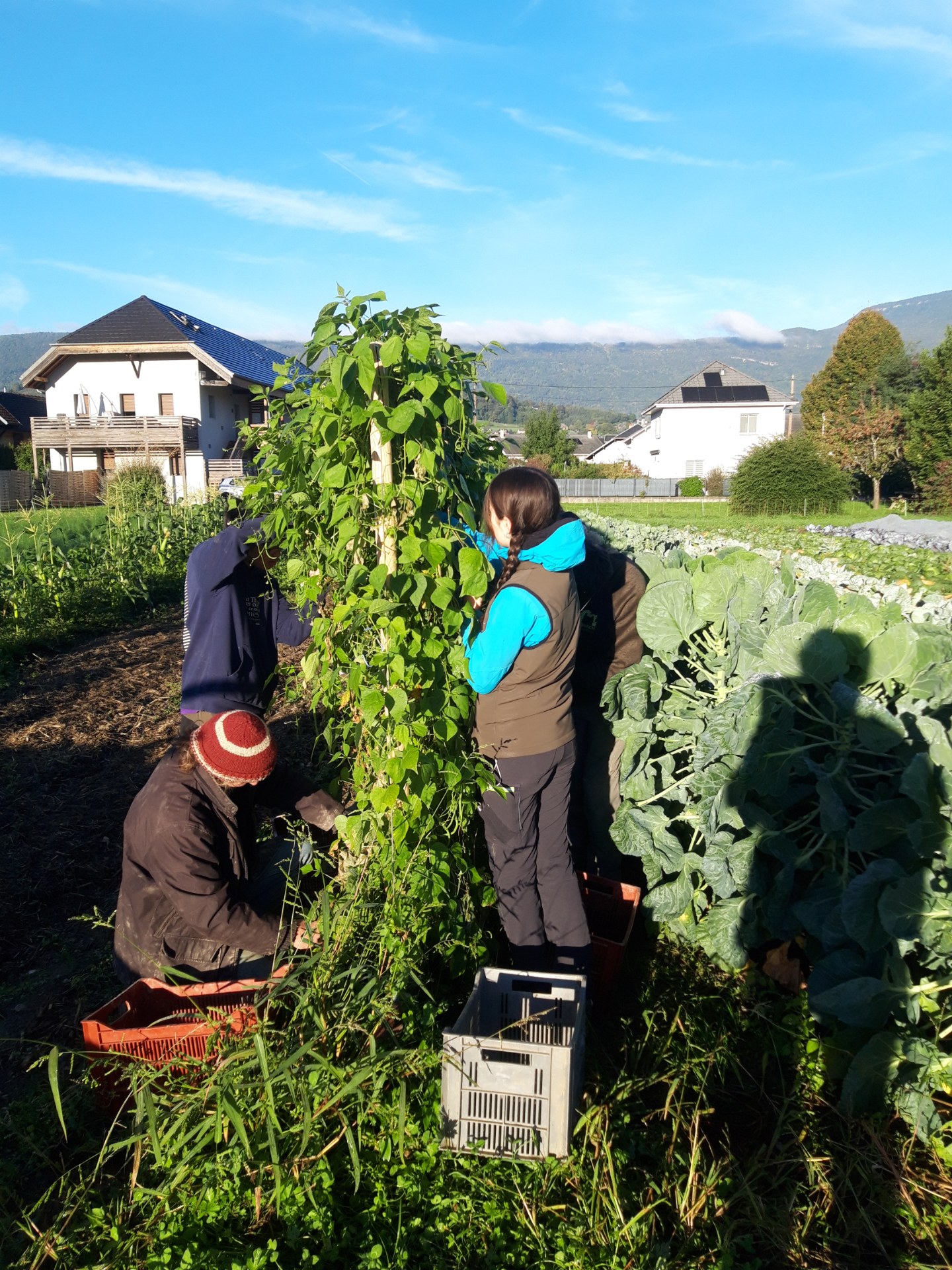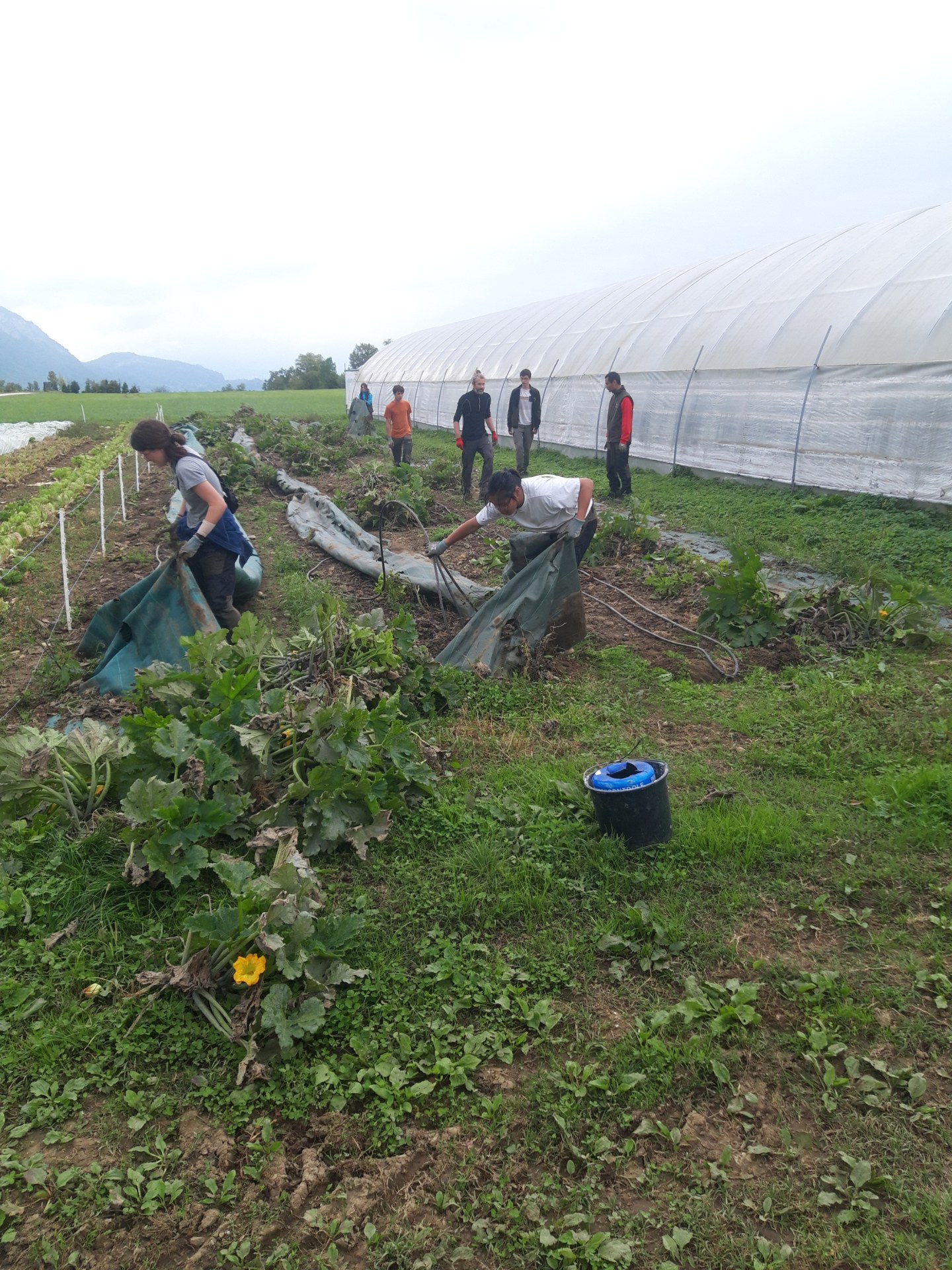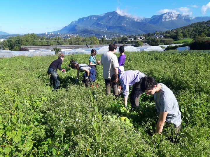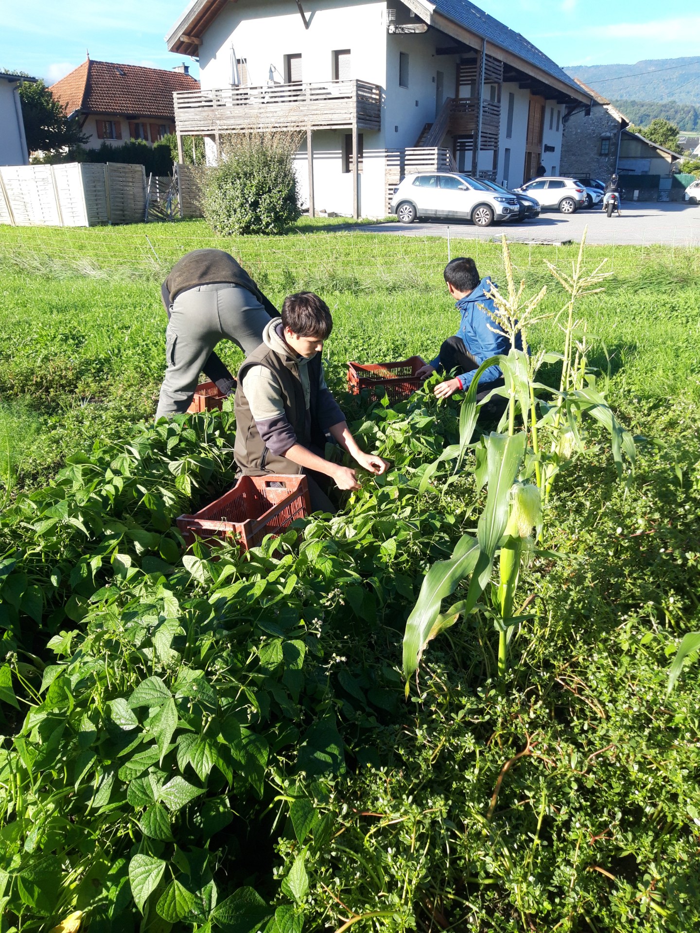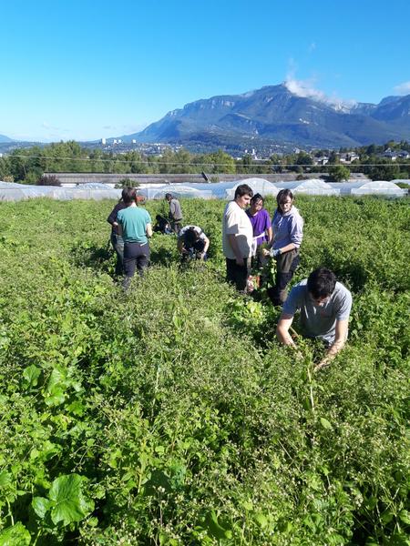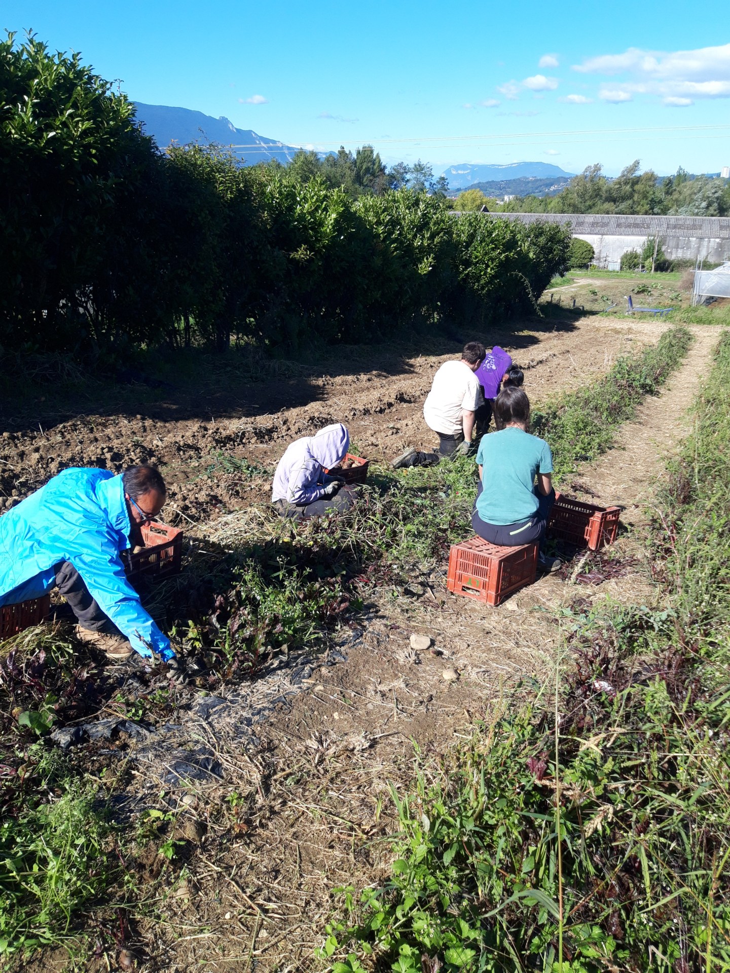 Première étape : Les Triandines, un jardin de Cocagne situé à Cognin, où ils ont participé à la récolte des radis et des navets.